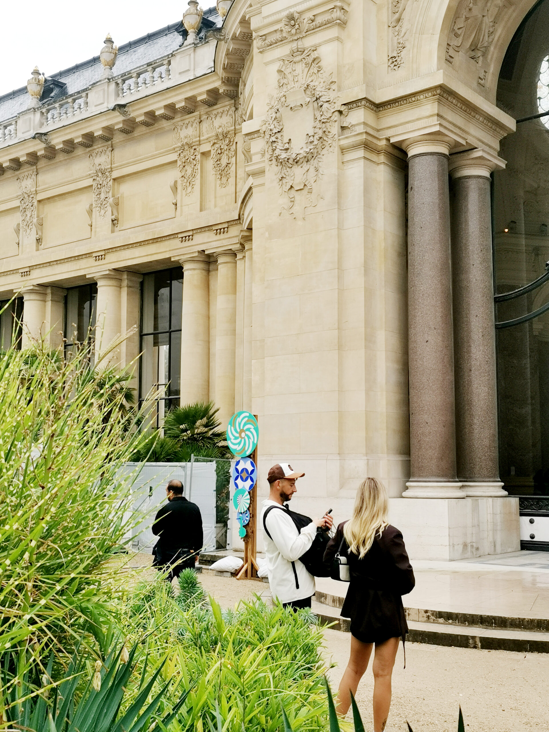 Cette installation fait suite à la conduite d’un projet d’éducation artistique réalisé avec les élèves de la classe FCIL Graphisme et médiation culturelle du lycée Alfred Costes à Bobigny autour d’expérimentations graphiques sur le thème du jardin et en lien avec les équipes de médiation du Petit Palais. Un premier prototype a été présenté aux Journées du Patrimoine en septembre 2025, dans le jardin du Petit Palais.