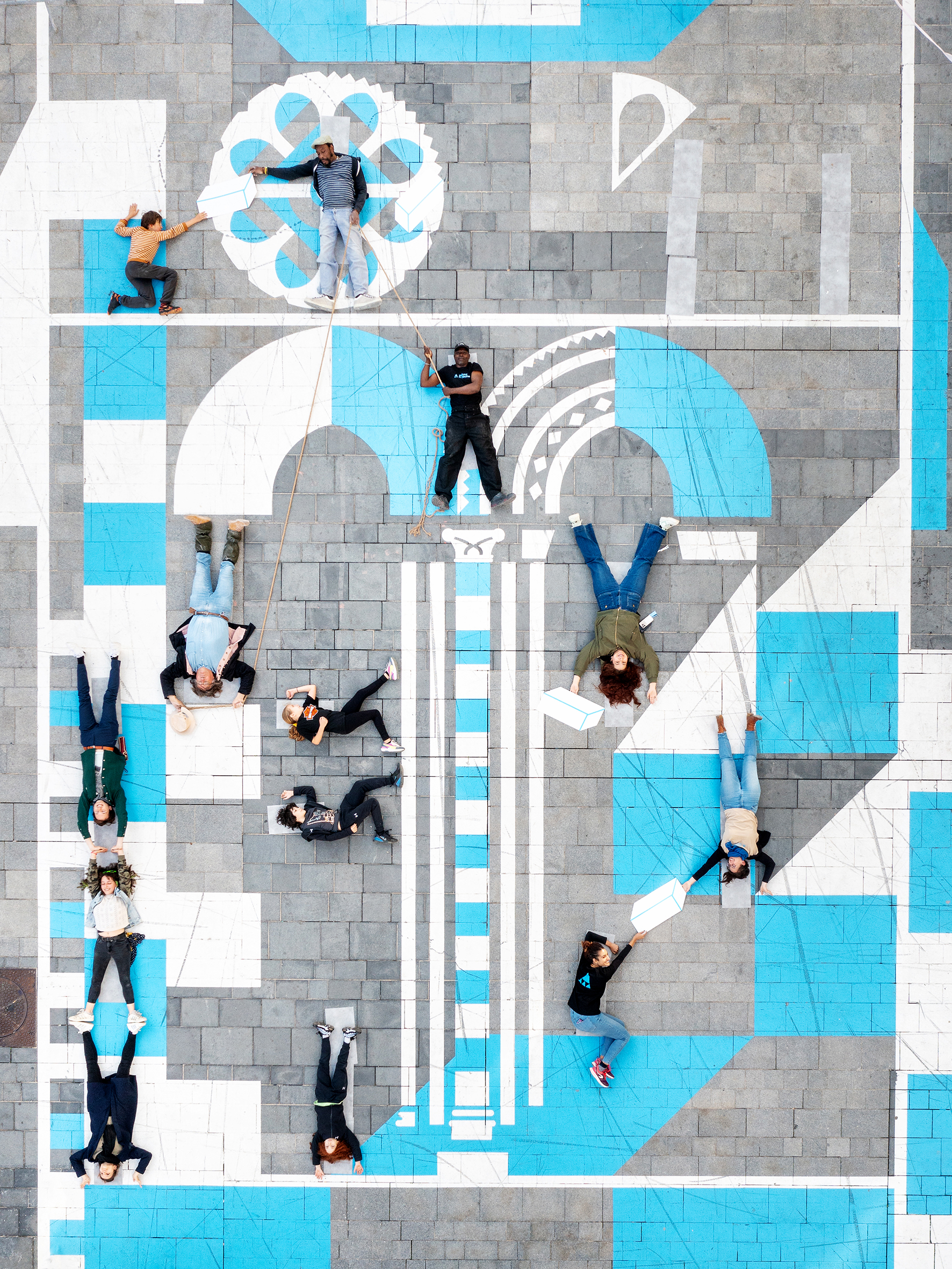 Le projet « La flèche à l’échelle 1 », c’est une représentation à l’échelle, au sol, de la future flèche de la basilique de Saint-Denis sur le parvis Victor Hugo. Référence aux tracés échelle 1 des épures, jeu avec les mesures anthropométriques du Moyen-Âge, préfiguration du monument à venir, comme une ombre portée avant l’heure, support d’appropriation habitante… l’œuvre partagée est un peu tout cela !