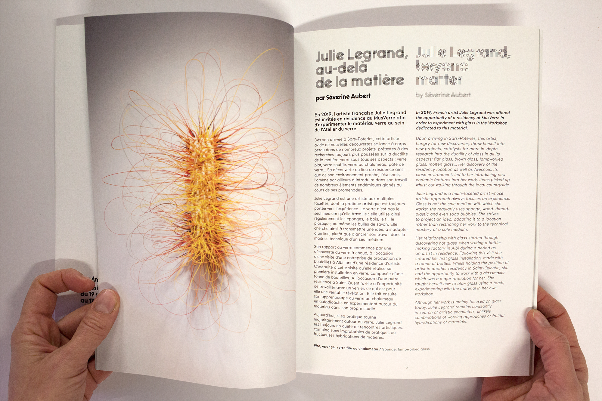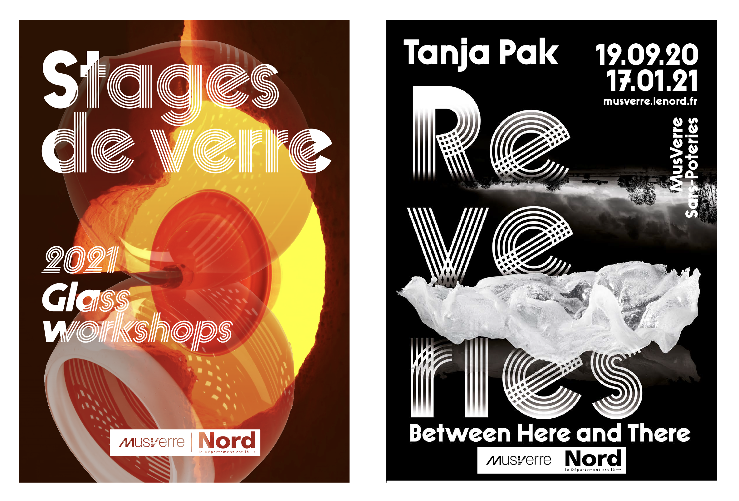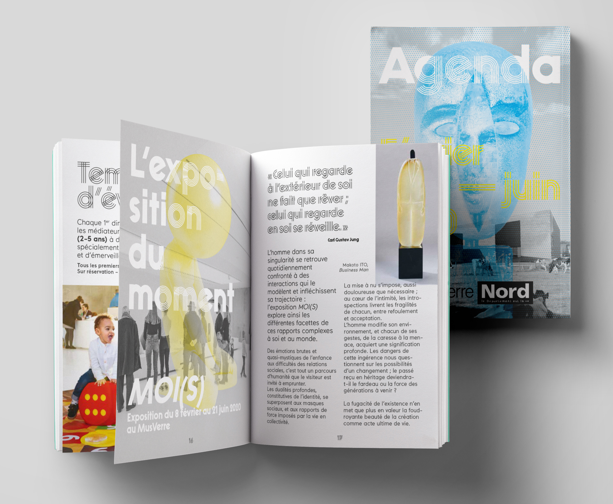 Conception graphique des supports d’édition et de communication du musée du verre contemporain situé à Sars-Poteries : agenda trimestriel, affiches d’exposition, signalétique, dépliant-livret des stages, livrets d’activités, catalogue, etc.